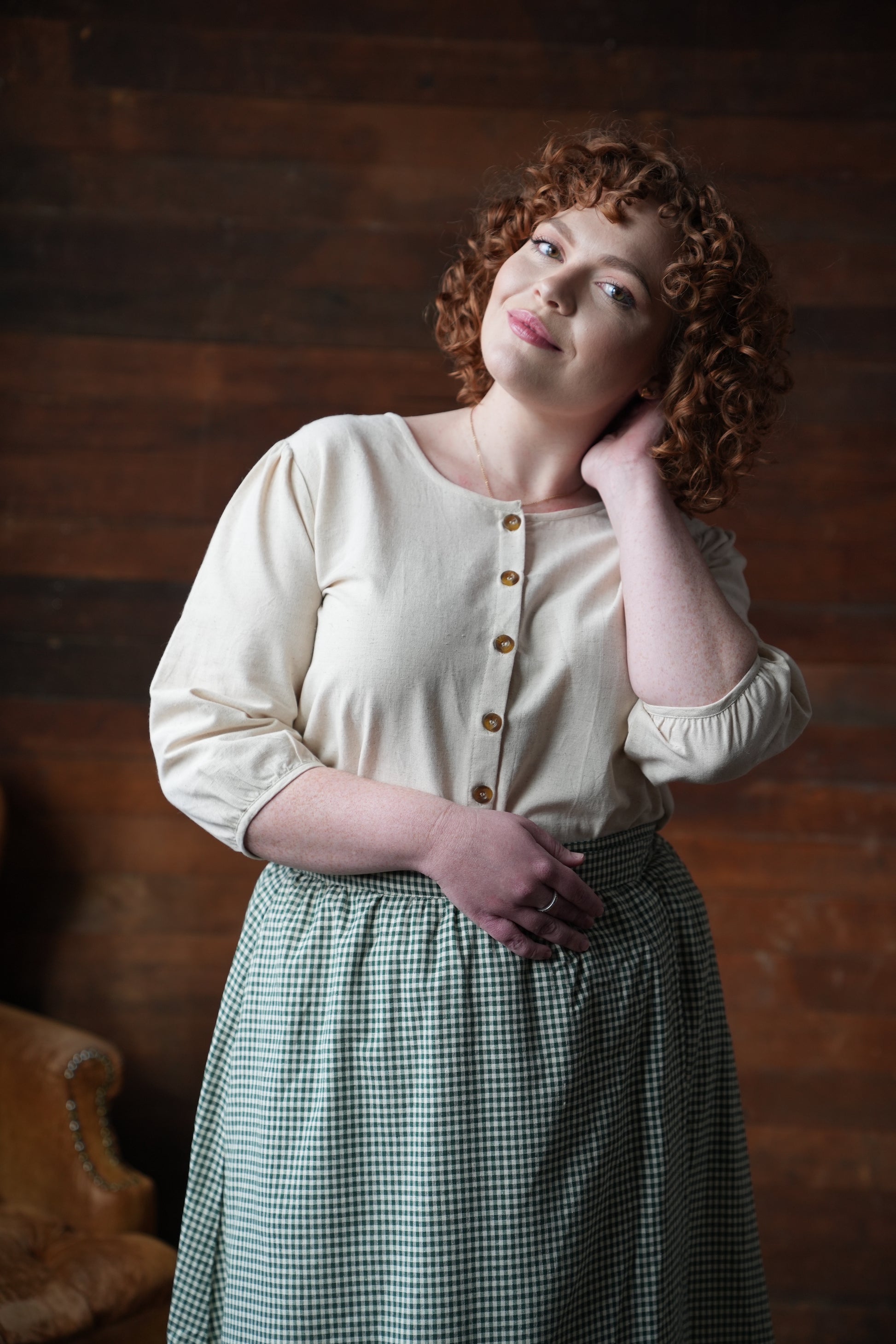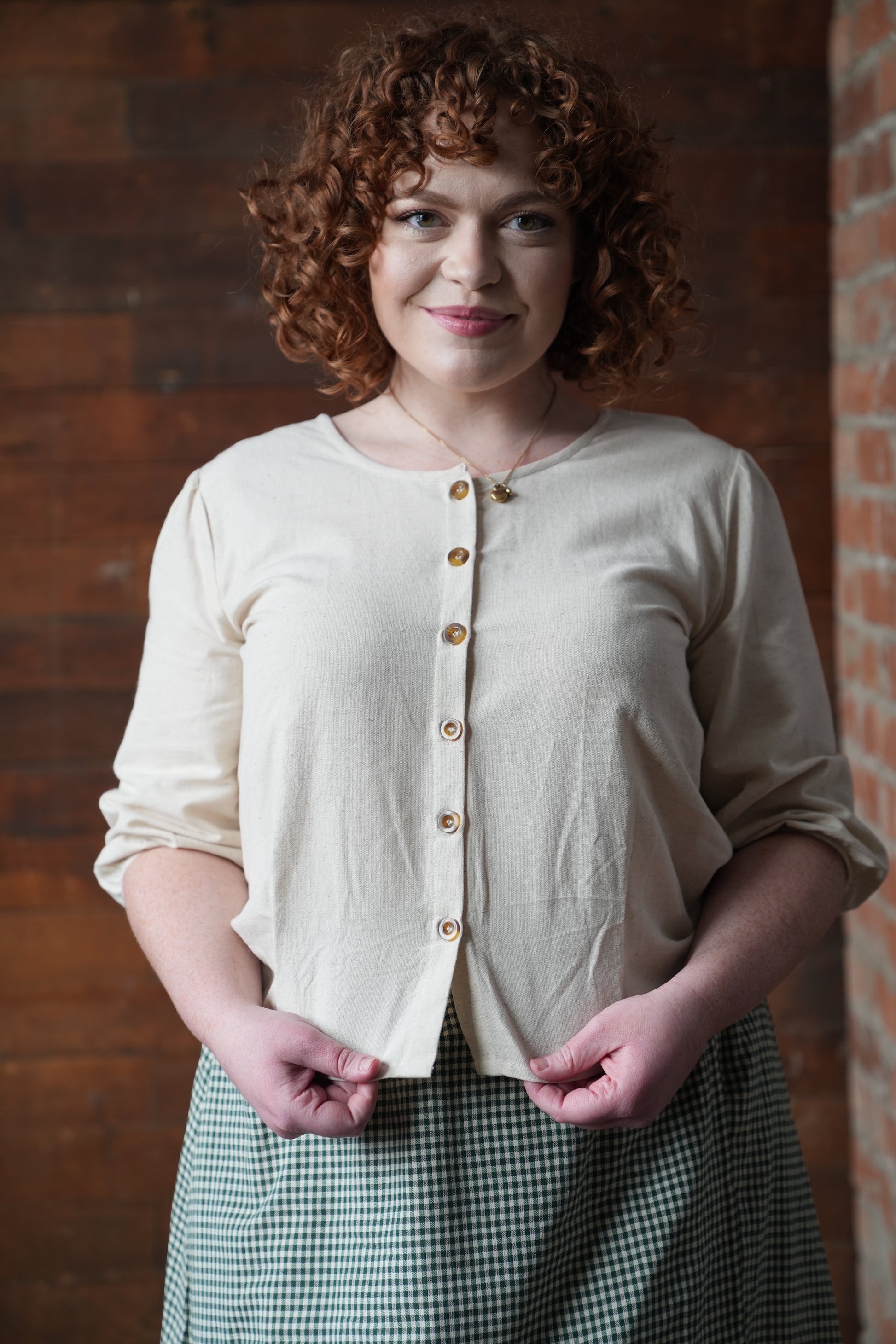 neckline same in front and back so buttons can be worn either way